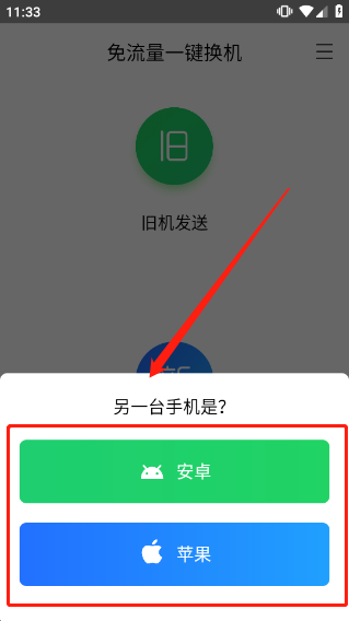 4、选择后,在接收资料的手机上选择新机接收,然后用旧机扫描新机上的二维码。