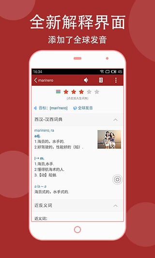- 拥有与桌面版相同容量的词库。包括西汉-汉西词典、西班牙语近义词词典、西班牙语专业词典以及西西、西英等大量词库