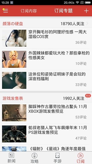 4、定制专题:E3大展,热门游戏,特色专题。颜落的硬盘等你挖掘。