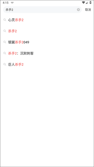 2、在搜索界面的输入栏中填写杀手2,在下拉词中找到并点击“杀手2”字样;