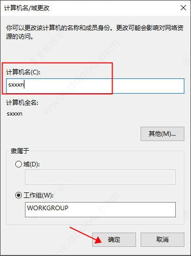 4、电脑名改成:sxxxn,重启电脑;