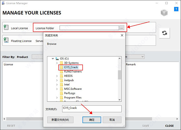 ps:指定授权目录为C盘Ci15_Crack文件夹,点击保存按钮,然后关闭授权管理器