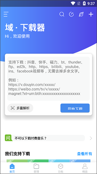 1、打开域下载器官方版即可直接将链接复制到输入框进行解析下载;