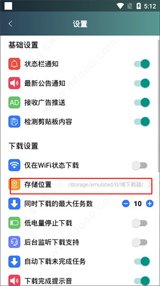 5、看着不仅可以再这里设置存储位置,还能设置基础设置、下载设置、播放设置、磁力设置等功能。