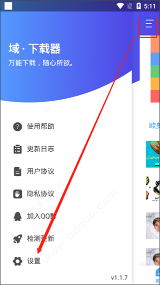 4、要设置存储位置的话,点击右上角进入菜单,选择设置;