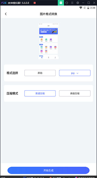 4、选择好转换格式和压缩模式之后,点击开始生成。