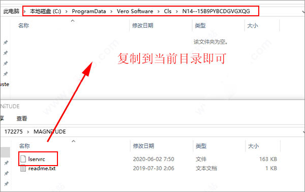 7、将MAGNiTUDE文件夹中的lsevrc复制到C:ProgramDataVero SoftwareClsN14--15B9PYBCDGVGXQG中,每一台电电脑都不同。