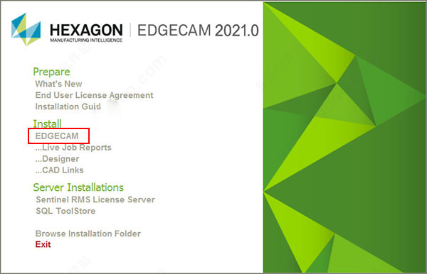2、安装程序,如图所示,点击安装Edgecam选项。