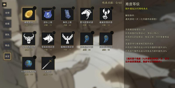 增加难度的选项可以让你获得额外的可用传承点数。