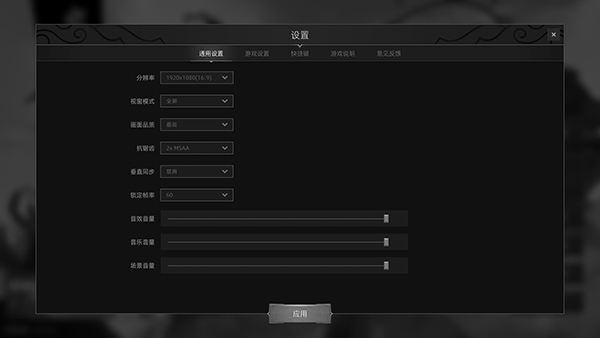 3、进入游戏之后小编建议去设置一下,在通用设置中建议设置为全屏,分辨率根据自己的显示器而设定;