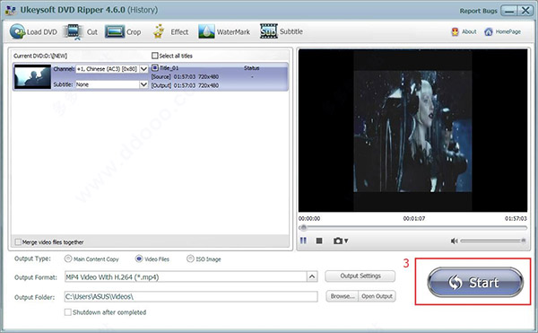 3、单击“开始”按钮开始将DVD转换为视频音频。单击“打开输出”按钮以检查结果。