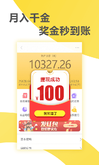 4、提现快速,所挣的钱都能提现到账,门槛低,首次满3元即可提现,秒到账!