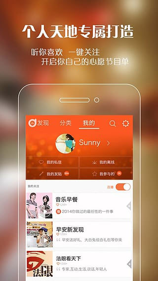 超高人气的节目社区,最具趣味的社交平台。摆脱寂寞空虚冷的fm,让你秒变高大上!