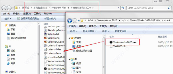 9、再将crack破解文件夹中的”Vectorworks2020.exe“复制到软件安装目录下替换即可;