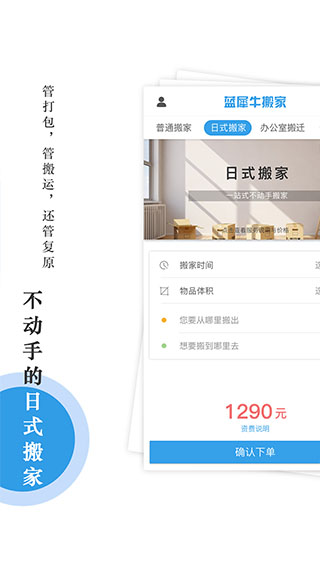软件依托于完善的价格体系和服务流程,完全改变了传统搬家模式。利用移动互联网特点,采取线上与线下相结合的优势,用户线上App下单明码标价,全程无现金支付。在线下我们有经过严格审核和培训的金牌司机专业服务,整体搬家体验有口皆碑。我们提供普通搬家、日式高端搬家、办公室搬迁和长途搬家,您只需在app上输入地址和时间就可立即享受优质的24小时搬家服务。