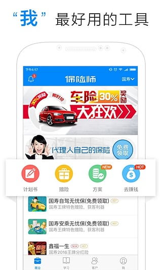 1、有专业展业技能、保险资讯助您快速签单;2、及时的亲情关怀让你更加贴近客户,保险师助您赢在起点;