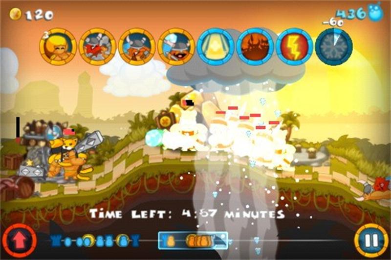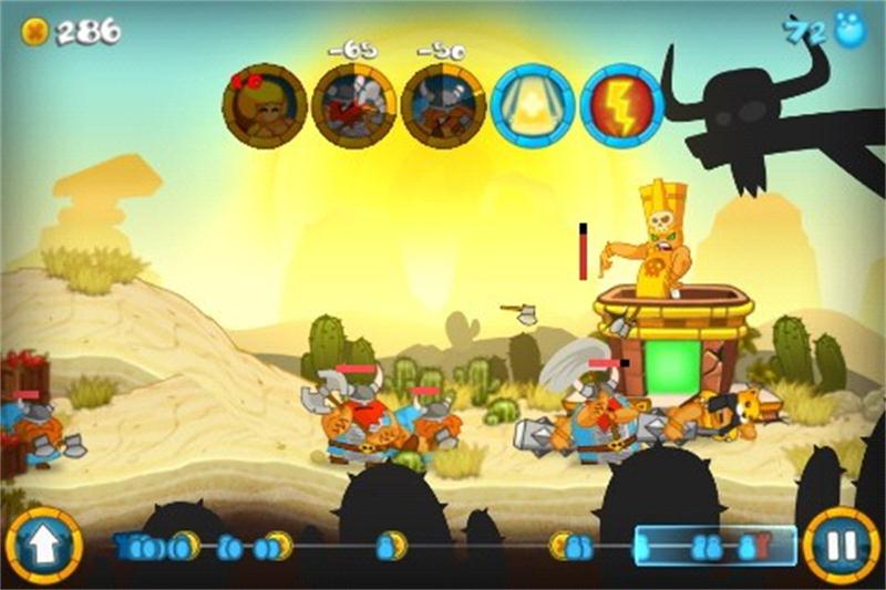 第四关铲平神庙,难度慢慢升高了,这关一开场,开10个农民,金钱巨大化,然后先弄吹弩手和捷豹,然后就可以出发了,路上要不断的造兵,这样才会获得真正的胜利,另外,毒药炸弹最好选在对方出兵密集的地方放一个,然后别忘了放一个在对方农民那里,把对方的金钱降低,然后就可以铲平了。