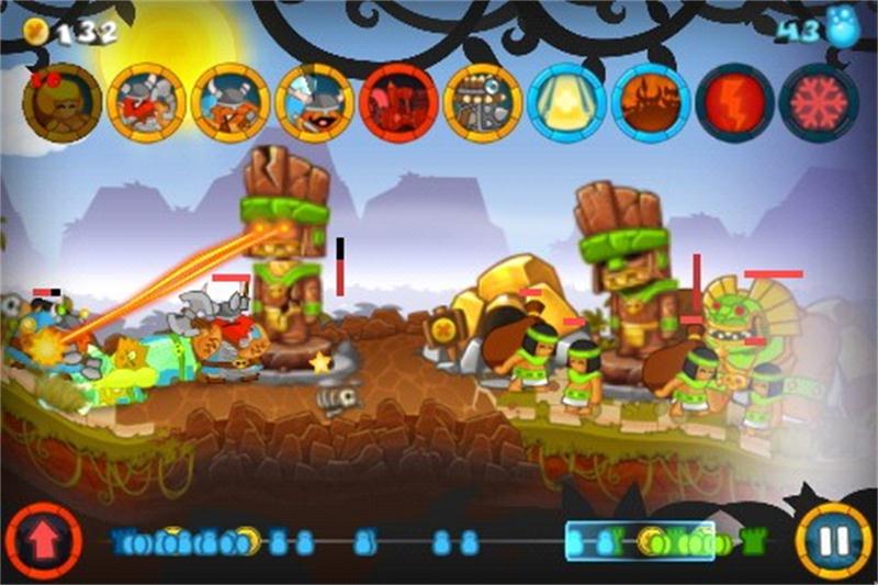 兵种:农民(基本)、捷豹(捷豹战士)、吹弩手(标枪军)、小巫(巫师)、胖子(太阳巨人)、激光塔(雕塑)。