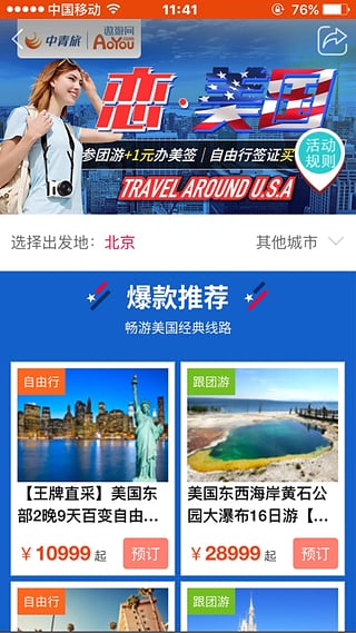 【专注旅游35年】遨游旅行APP是中国电子商务诚信示范企业:中青旅·遨游出品专业度假旅游APP。