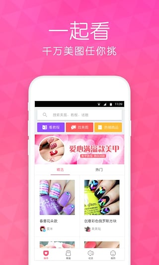 2、精品教程:身边的免费美甲老师 - 独家功能——“求教程”帮你制作教程,详细直观的美甲教程,即看即学会;