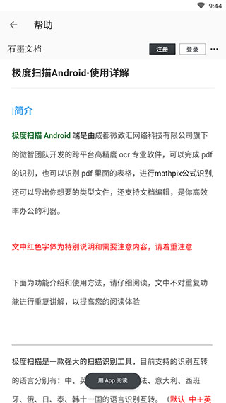 极度扫描是一款强大的工具支持扫描,文字识别,mathpix公式识别,超高的识别准确度和强大的编辑模式,都是学习和工作中的高效率的利器,极度扫描可以对图片上的阴影进行最大程度的抑制,保证增强后的图片达到更好的预览效果。
