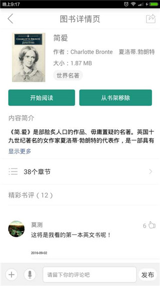 1.英语读书app官方版有着丰富的图书资源,整理上万本英语图书,包含人物传记、经典名著、书虫系列、儿童读物、长篇短篇小说等等,另外,中国经典武侠小说,古龙小说,天涯明月刀,哈利波特,星辰变,绝世唐门,冰与火之歌、暮光之城、魔界、福尔摩斯、007系列,傲慢与偏见、简爱,平凡的世界等等知名书籍。。2.支持一键加入书架,一键加入书签,书架和书签方便管理和查看,支持离线阅读。