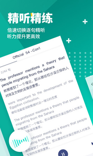 真题原文精听精练,中英文对照翻译,支持逐句倍速,练听力更有效;