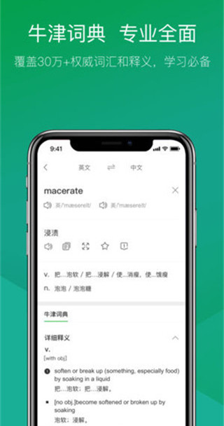 覆盖30万本地词条,无需联网即可查看;云端500万词条,联网状态提供网络释义、同反义词、例句、中中释义和英英释义等