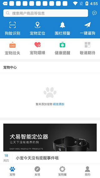 犬易app预设安全活动范围,当狗狗走出时自动报警,自动预警系统助你更自由地遛狗、不丢狗。