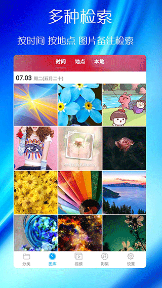 您可以将相册分类管理,自定义文件夹。比如家庭,工作,旅游等等,我们还支持按拍摄时间,拍摄地点,图片大小等排序,方便您查找。你还可以备注你的图片,记录你当时的心情。
