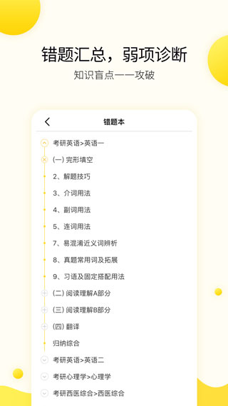 5、智能侦察薄弱环节,智能系统通过分析用户的学习、练习、测试等数据,会为用户挖掘出优势与薄弱环节,避免木桶效应,高效通关