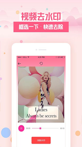 1、裁剪去水印:在屏幕上选取水印所在区域,松手即可快速去除水印。2、高级去水印:涂抹水印所在区域,松手即可去除水印。