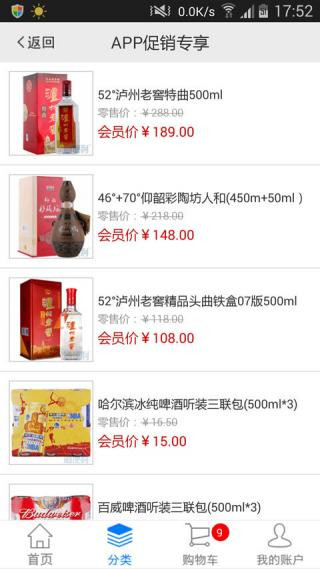 该软件所有酒水均系源头采购,减少中间环节,让利给消费者。同时,无论您到店面消费或是电话订酒,均可使用现金、银联卡或酒便利会员卡轻松完成支付。