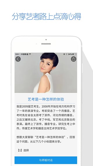 有问题随时提问,各式的艺考学习资料:文艺常识、写作技巧、自备稿件、声台形表、摄影技巧、小三门、乐理题等帮你扫清艺考的障碍!