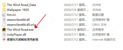 2、进入游戏的根目录,找到The Wind Road.exe,双击并执行它;
