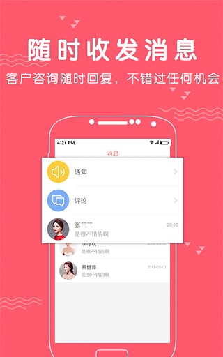 消息栏:新消息弹出提示,随时随地回复顾客咨询,婚礼纪商家版app不放过每个成单机会