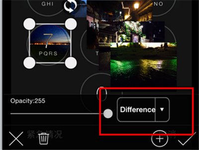 5、然后就繁琐重复十张编辑,摆好位置。为了保证效果,添加图片的显示效果最好是选择最下面的“Difference”。