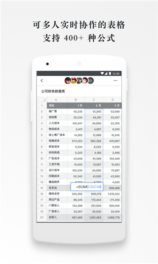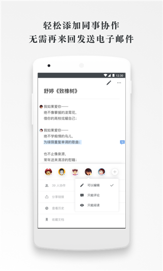 1、多人实时协作:石墨文档app官方版可以邀请他人与你协作编辑同一个文档或表格,并通过浮动的头像实时看到其他成员的编辑过程。