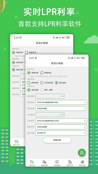1、房贷计算器最新版有着全新的界面、全新的交互模式、全新功能体验。我们一直在努力,一直被模仿,从未被超越。对,我们一直用心在服务。2、支持房贷计算、提前还贷计算、房贷还款对比、剩余还款计算、新房税费计算、二手房税费计算、实时利率查询、购房能力评估、购房宝典、房贷须知等多种房贷相关功能,支持装修计算器,理财计算器等。