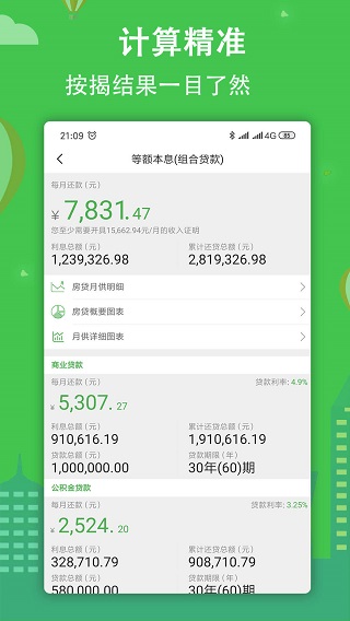 8、提供每月详细的等额本息和等额本金的商业还款报告/公积金还款报告/总还款报告。
