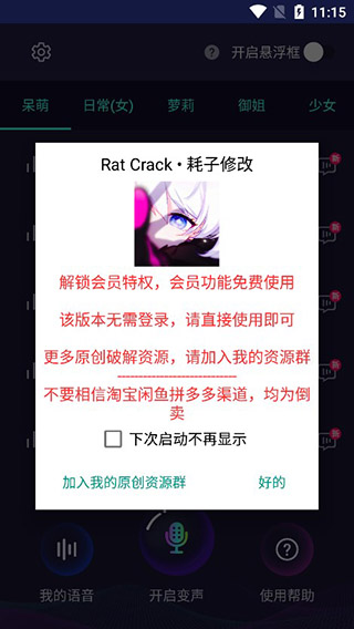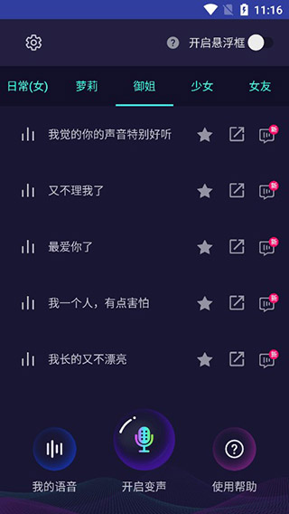 3、假如你是一名声音粗狂的抠脚大汉,用了它立马变成萌萝莉,和各种小哥哥、小姐姐变声聊天,好感度飙升,怎么聊都开心。
