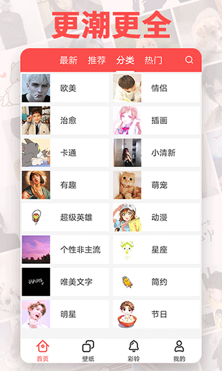 5.头像精灵app精选高清壁纸,包含动漫、风景、游戏、文字、视觉、情感、设计、明星、物语、艺术、机械、卡通、城市、影视等多种分类。满足你一切美化需求。