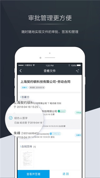 1、先进的电子合同签署工具;2、契约锁官方版随时随地签合同;