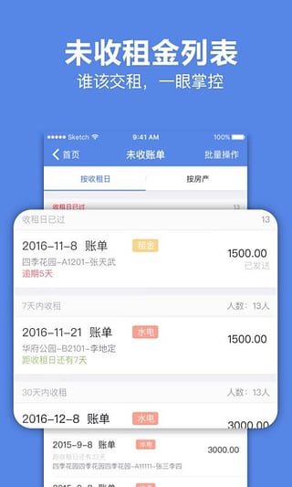 8、未收账单统一管理,按收租日远近排序,方便管理