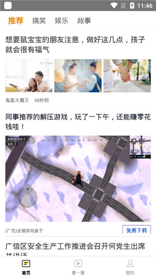 更新首页搞笑、故事、娱乐、推荐内容;增加短视频功能;增加任务赚钱模块