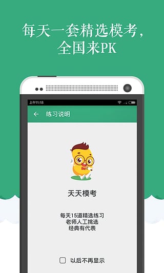 1.这是一款专业老师每天人工介入的题库产品由专业老师人工组卷,每天发布一套迷你模考,供全体用户自测。老师的人工组卷相比纯机器更有针对性,在复杂的教育产品中,更体现出经验的重要性,全体小伙伴做一套题,才能得出真实的比较。