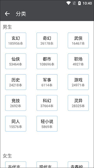 3、切换到找书这栏,这里我们可以看到所有分类书本内容,以及知道书本本数;