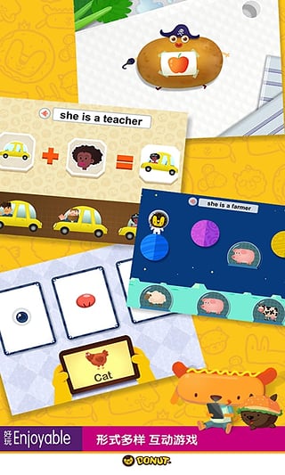 爱玩是孩子的天性,全新的互动游戏,帮助小朋友们将认知、拼读、应用结合在一起,张弛有度,激发孩子的学习兴趣,让学习的过程更加快乐有趣!