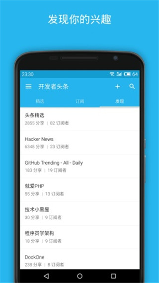 在开发者头条,你可以阅读头条新闻、分享技术文章、发布开源项目,订阅技术极客/技术团队开通的独家号/团队号和关注编程牛人。