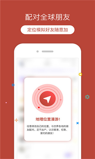 3、配对全球好友:任意修改自己的位置,与世界各地的朋友随意配对